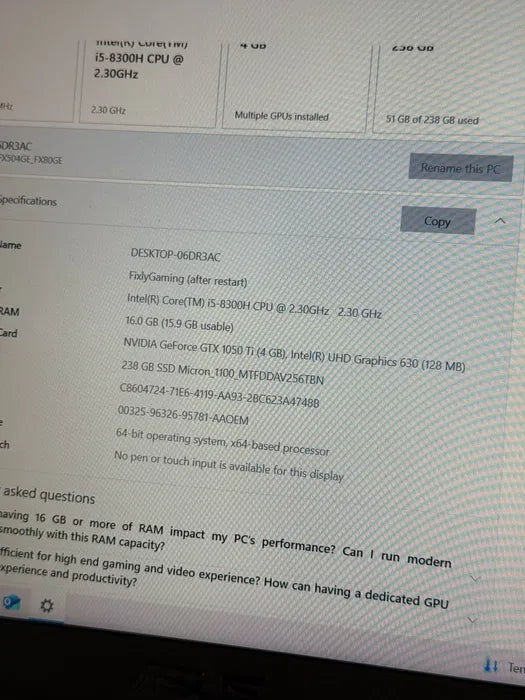Laptop Gaming | Asus FX504G | i5 8300H | 16 GB | Nvidia 1050 Ti